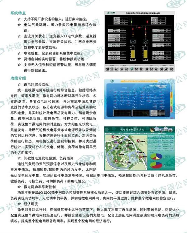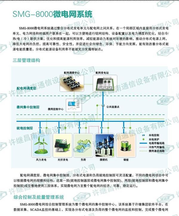SMG-8000微電網系統通過整合分布式發電單元與配電網之間的關系,在一個局部區域內直接將分布式發電單元、電力網絡和終端用戶聯系在一起,可以方便地進行組網結構、設備配置以及電力調度的優化。