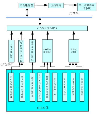 西藏旁多水電站在線監(jiān)測(cè)系統(tǒng),對(duì)220kV和110kVGIS本體進(jìn)行在線監(jiān)測(cè),主要有斷路器在線監(jiān)測(cè)、SF6微水密度在線監(jiān)測(cè)、局部放電在線監(jiān)測(cè)、避雷器在線監(jiān)測(cè)以及全站在線監(jiān)測(cè)分析中心。系統(tǒng)組成如下: