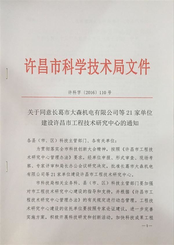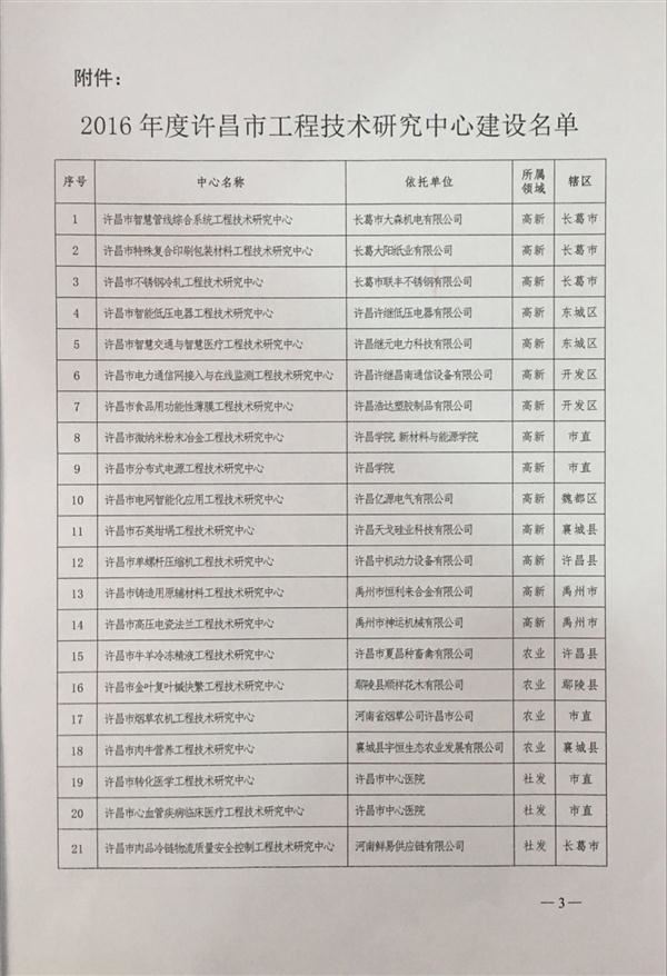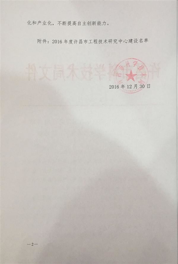 熱烈祝賀我公司成立許昌市工程技術研究中心