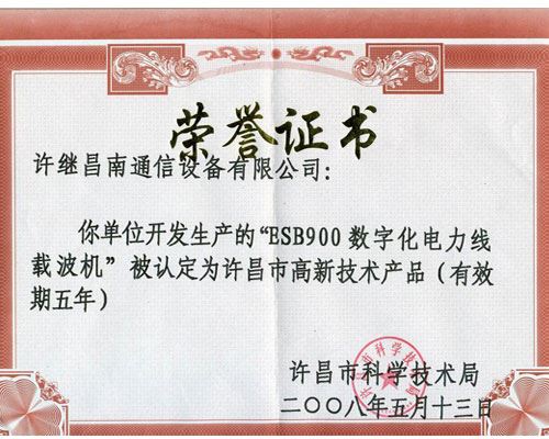 ESB900高新技術(shù)榮譽(yù)證書(shū)